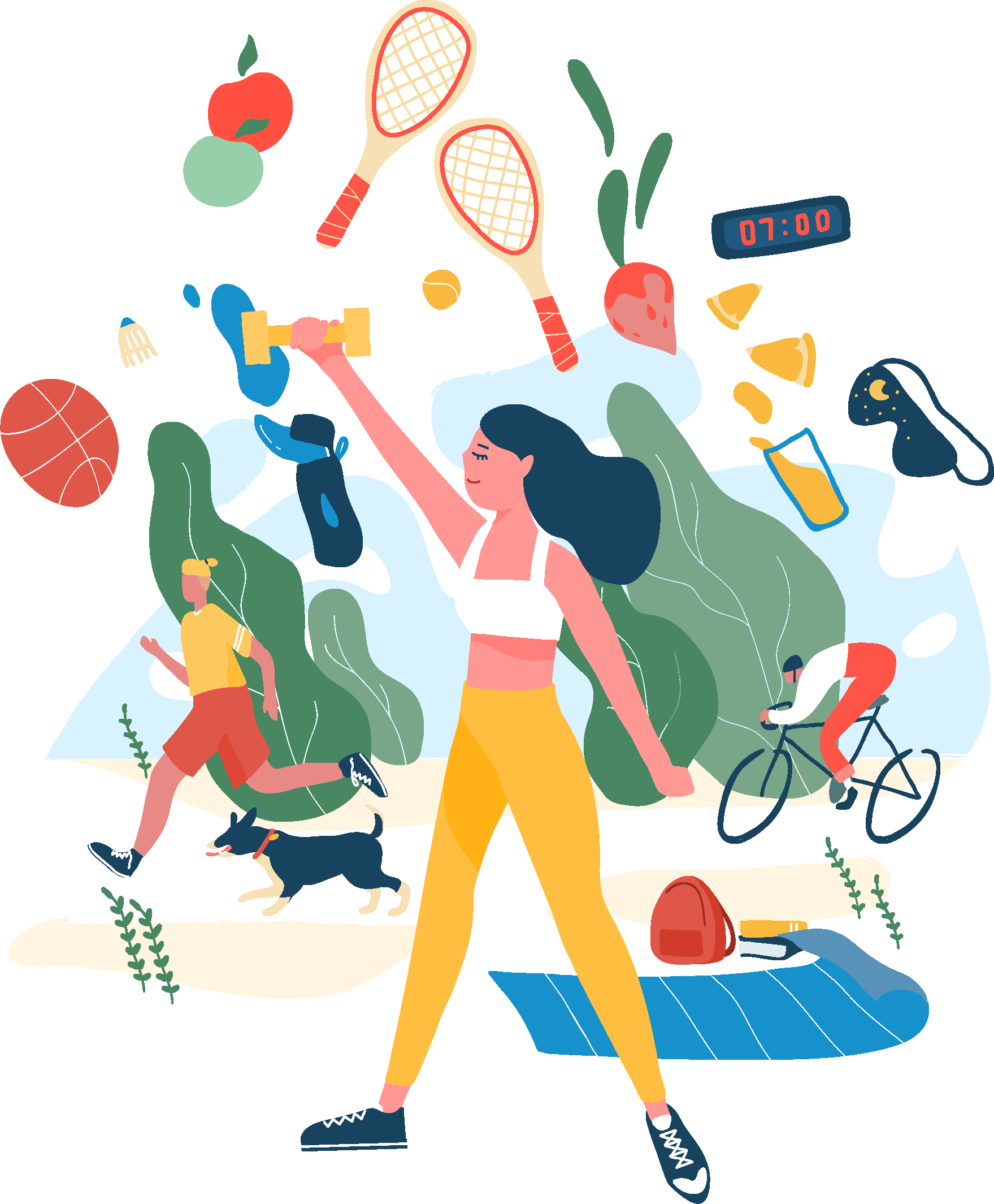 私たちウエルネスサポートが考える健康とは、適度な運動と規則正しい生活習慣です。健康増進の環境を整え、皆さまに提供することが、私たちのできるおもてなしです。ぜひ健康への第一歩を踏み出してください。ここから二人三脚で健康増進をはじめましょう。
